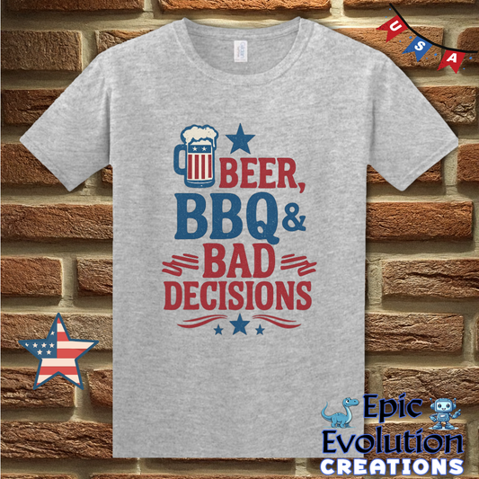 Beer BBQ & Bad Decisions Funny 4th of July Shirt for Men or Women