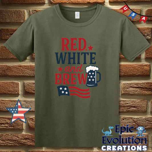Red White and Brew Funny 4th of July Shirt for Men and Women