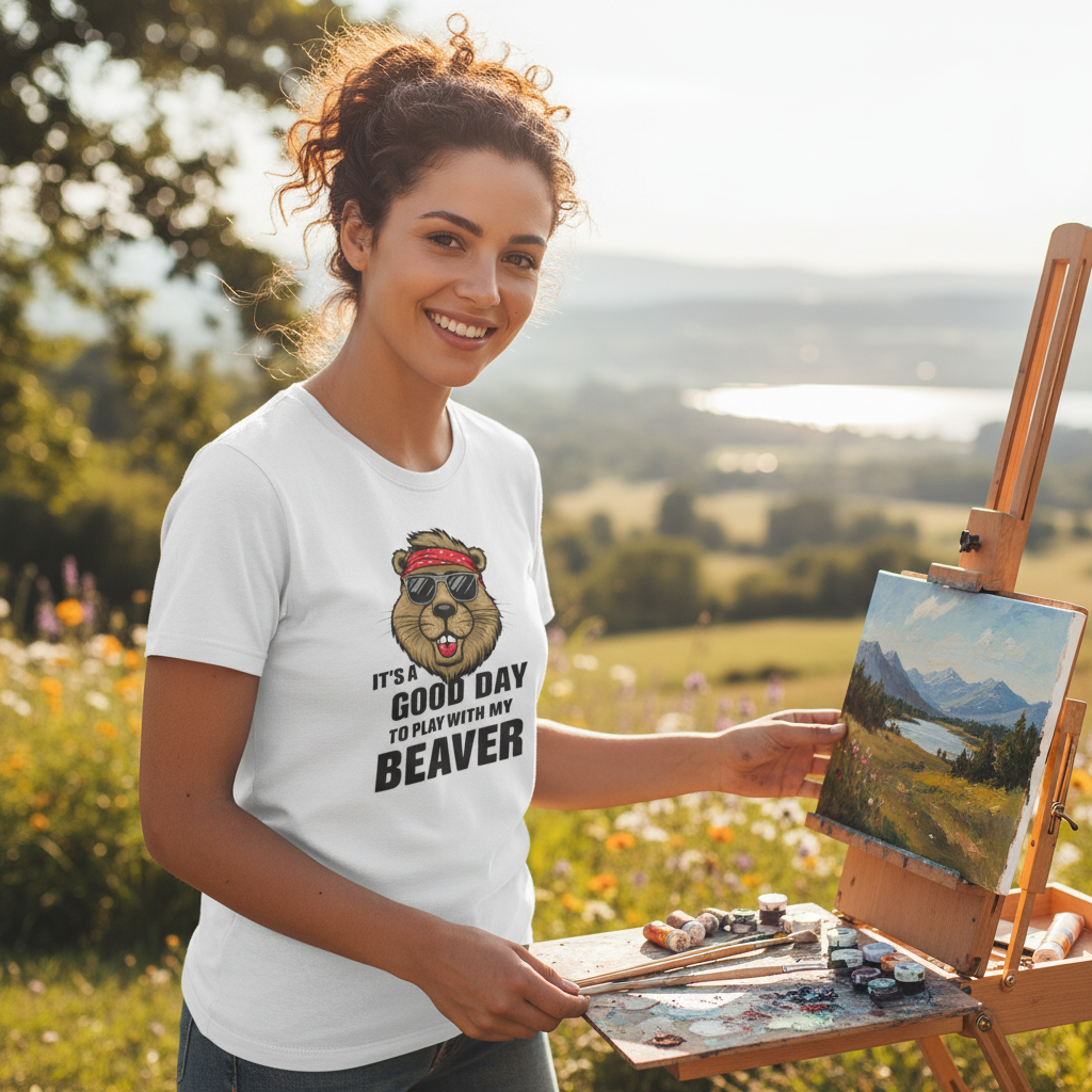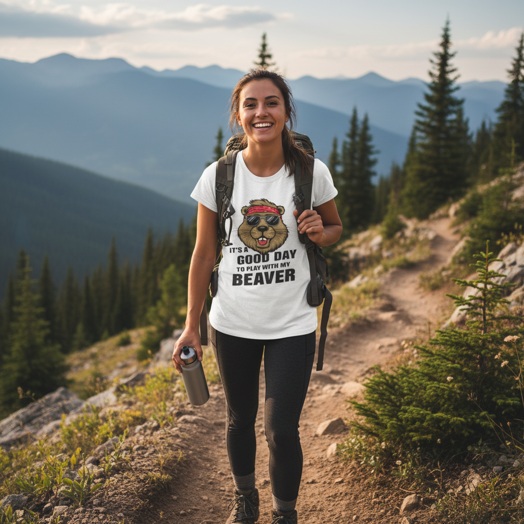 This funny beaver t-shirt is perfect for anyone who loves sarcastic and cheeky humor. Featuring a playful "It's a Good Day to Play with My Beaver" slogan, this graphic shirt combines humor and style for a unique look.